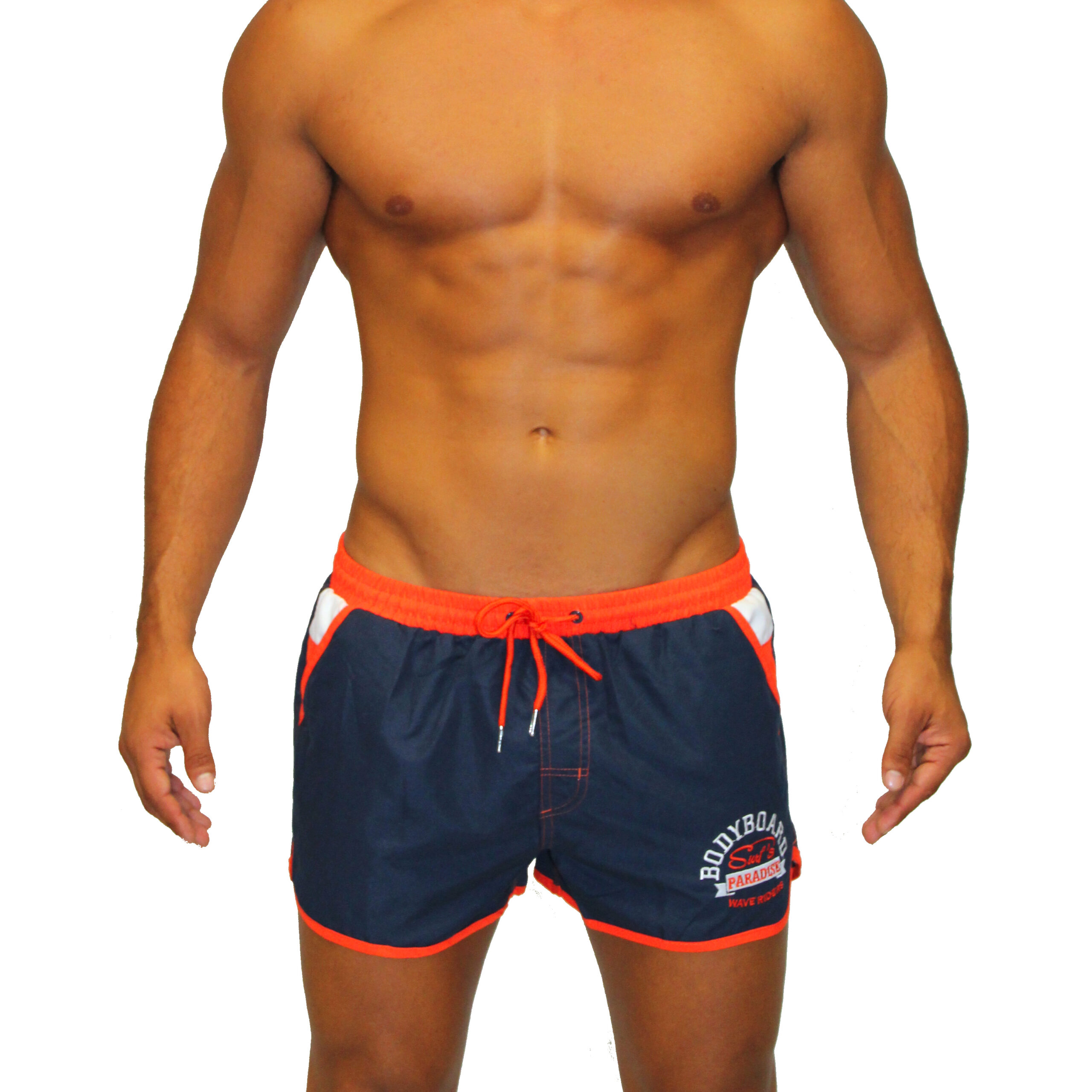 BAÑADOR BOXER LISO CON RIBETES CURVO EN CONTRASTE Y COMBO EN LATERALES MATERIAL: 80% POLIAMIDA / 20% ELASTAN TALLAS: M - L - XL - XXL